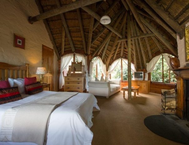 - There are 14 self-contained luxury thatched cottage with stunning sea, forest and/or mountain view bedrooms en-suite (many with fire places).